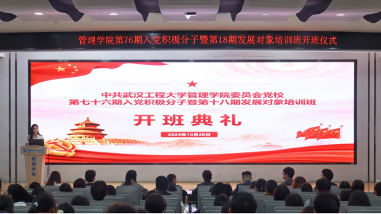 (通讯员 李梓煜)10月28日下午,中共武汉工程大学委员会党校管理学院分党校第76期入党积极分子暨第18期发展对象培训班开班典礼在文科楼413报告厅举行。学院党委书记、分党校校长左辉,党委副书记、分党校副校长罗琼,全体学生党支部书记及本期培训班的100余名学员参加了开班典礼。典礼由党务干事李梓煜主持。