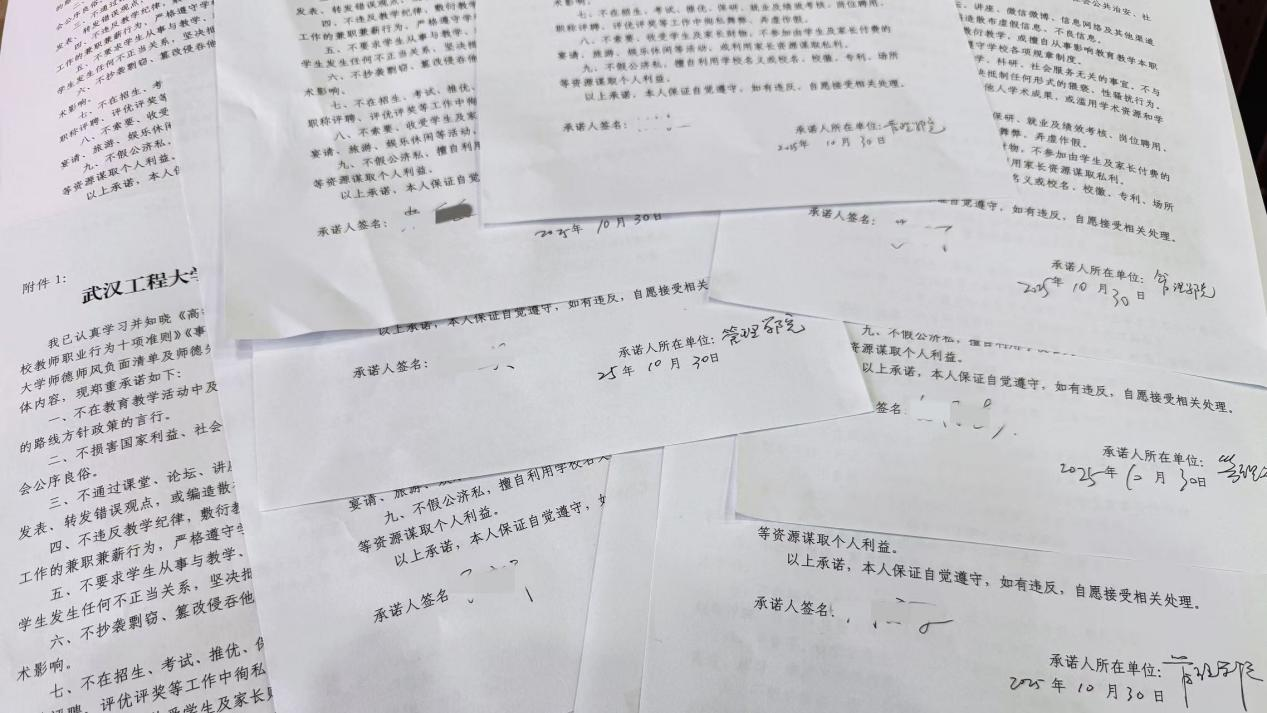 活动第二项,全体教师在副院长张宗祥带领下重温教师誓词。第三项全体教师现场签署武汉工程大学教师师德师风承诺书。