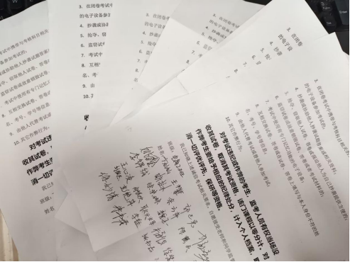 主题班会是筑牢诚信思想防线的重要阵地。各班通过集中召开主题班会,班长带领同学们深入学习《武汉工程大学学生手册》中考场管理规定、违纪处分办法等文件,逐条厘清考试红线、明确纪律要求。班会强调全体同学需秉持诚信应考原则,严守考场纪律,共同维护公平公正的考试秩序。班会最后,全班同学郑重签署诚信应考承诺书,以庄严承诺筑牢诚信防线。