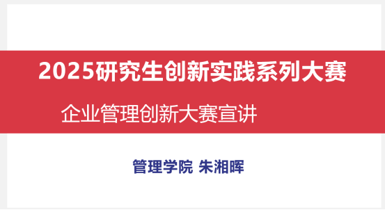 (通讯员 朱湘晖)中国研究生创新实践大赛由教育部学位管理与研究生教育司指导,中国学位与研究生教育学会和中国科协青少年科技中心共同主办,是目前我国唯一被政府认可和指导的专门面向研究生群体的全国性赛事。学院上下以饱满的热情和坚定的决心,全力投入到研创赛“企业管理创新大赛”的备战工作。作为培养新时代商科人才的重要阵地,管理学院将此次大赛视为检验研究生培养质量、锤炼学生创新创业能力、展现学院办学特色的关键舞台,精心组织、周密部署、全力备赛。