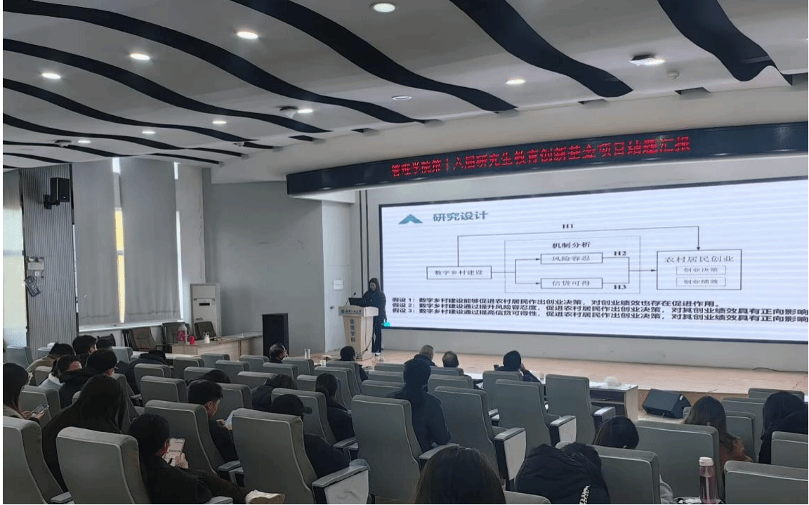 (通讯员:于怡迪 张惠柔)为持续深化研究生教育创新实践,全面检验研究生科研项目完成质量,管理学院于11月25日上午在文科楼413报告厅成功举办第十六届研究生教育创新基金结题暨第十七届研究生创新基金申报评审会。会议邀请学院院长闫华飞,副院长张宗祥、熊婵,院长助理朱喆,会计系教授张国柱五位老师担任专家评委,43位申请结题答辩的研究生参与此次会议,会议由朱喆主持。