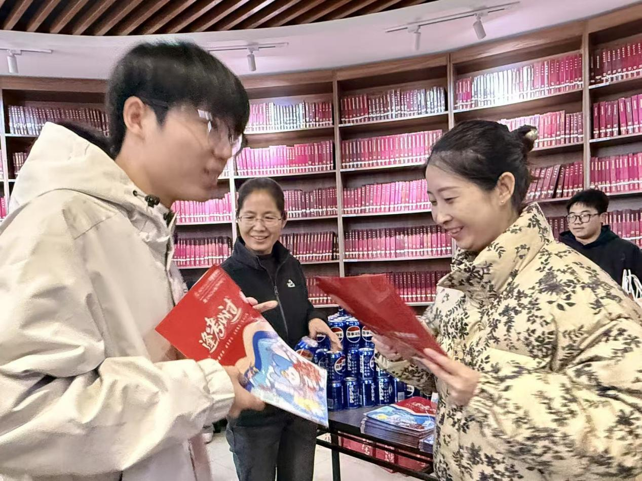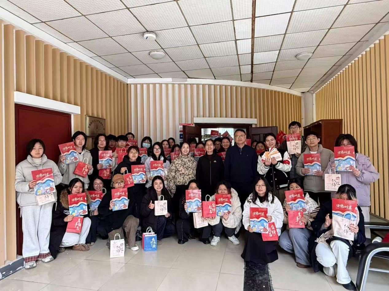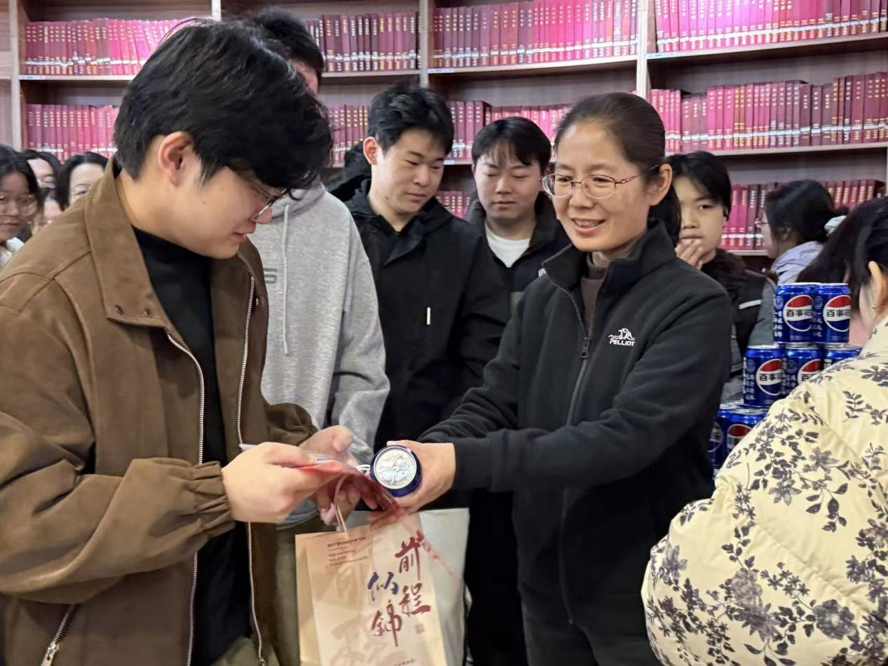 随后,学院领导与老师们亲手将一份份满载心意的礼包递到学生手中。礼包中包含学院定制的“管小理”专属“金榜题名”百事可乐、“逢考必过”文件夹、“一战成硕”贴纸,以及象征“你真棒”的棒棒糖、寓意“好事发生”的彩虹糖等暖心物品。每一件礼品都承载着学院对学子们前程似锦、未来可期的美好祝愿。