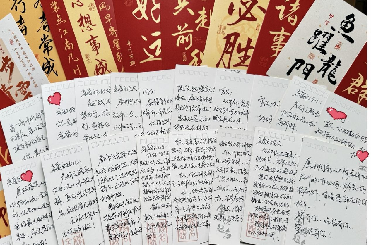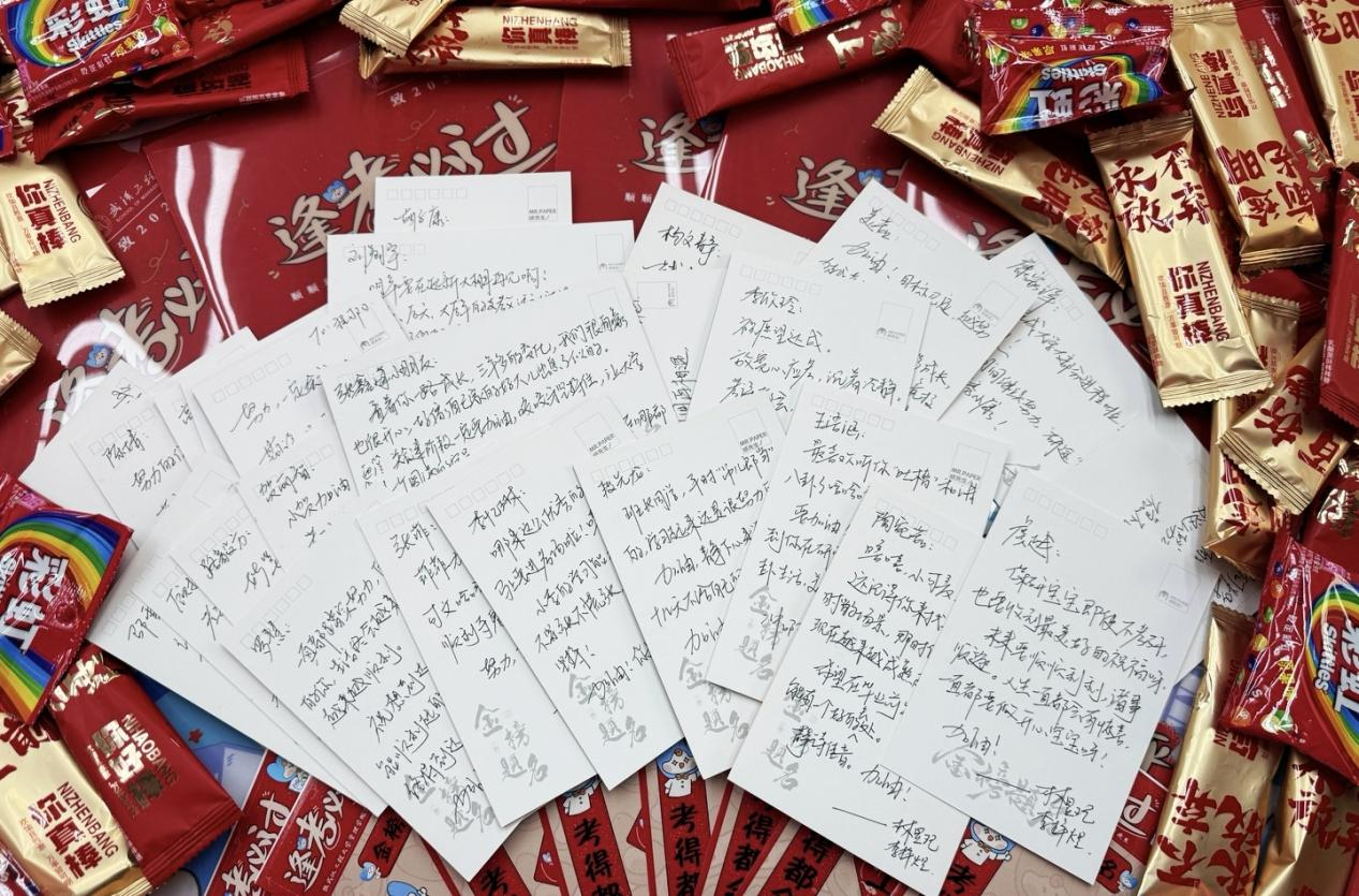 活动现场特别设置了“暖心明信片”环节。辅导员老师提前征集了50位考研学生家长对孩子的殷切嘱托与温情鼓励,将拳拳亲情落笔于明信片之上;同时,还为考研学子们逐一写下真挚祝福与加油话语。字里行间的牵挂与期许,让现场学生深受触动,不少同学热泪盈眶。寒冬时节,这份来自家人的牵挂与学院的关怀,恰似一缕暖阳,既舒缓了学子们冲刺阶段的焦虑与疲惫,更将温暖与力量注入心间,化为他们砥砺前行的底气与攻坚克难的信心。