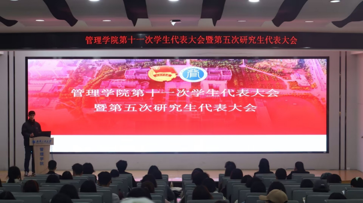 大会听取并审议《管理学院第十届学生会工作报告》《管理学院第四届研究生会工作报告》。刘靖锋、孙钱龙分别代表第十届学生会、第四届研究生向大会作报告。