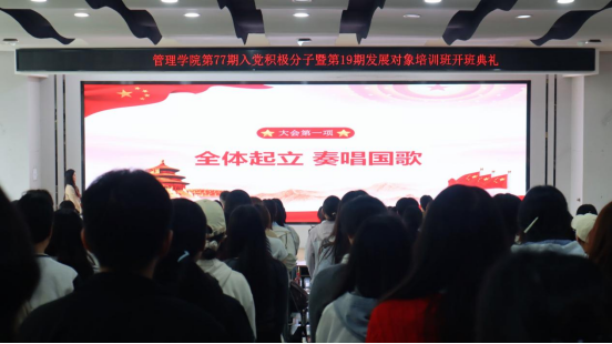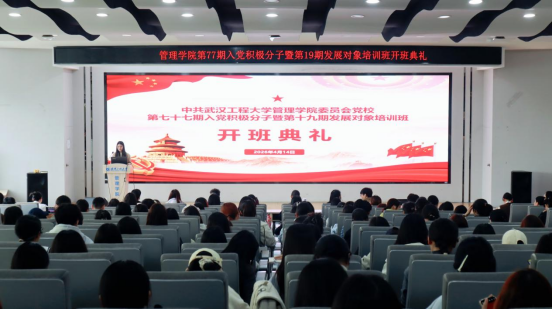 (通讯员 李梓煜)4月14日下午,中共武汉工程大学委员会党校管理学院分校第77期入党积极分子暨第19期发展对象培训班开班典礼在文科楼413报告厅举行。学院党委书记、分党校校长左辉,党委副书记、分党校副校长罗琼,全体学生党支部书记及本期培训班的200余名学员参加了开班典礼。典礼由学院党务干事李梓煜主持。