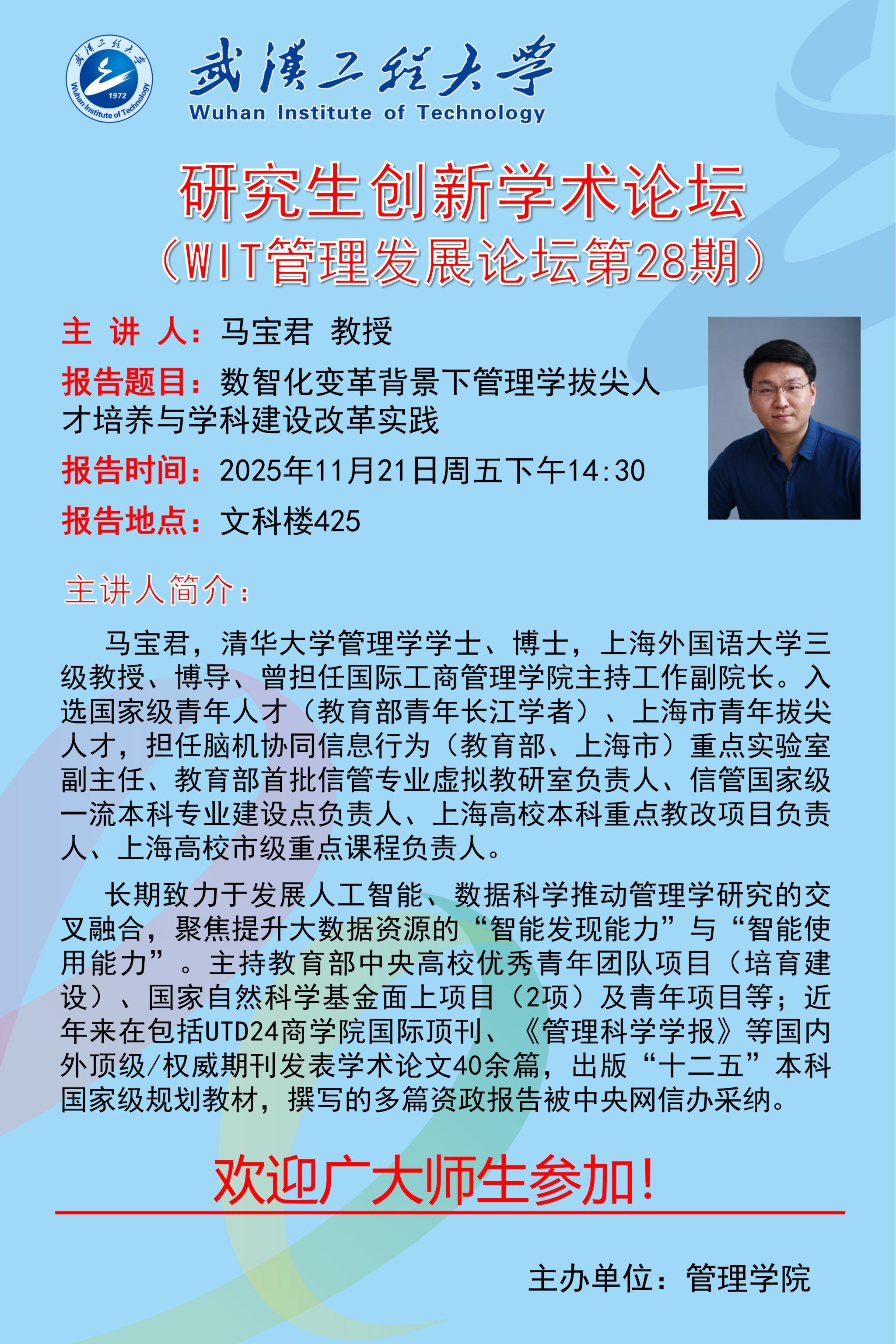 WIT管理发展论坛第28期:数智化变革背景下管理学拔尖人才培养与学科建设改革实践 主讲人:马君宝
