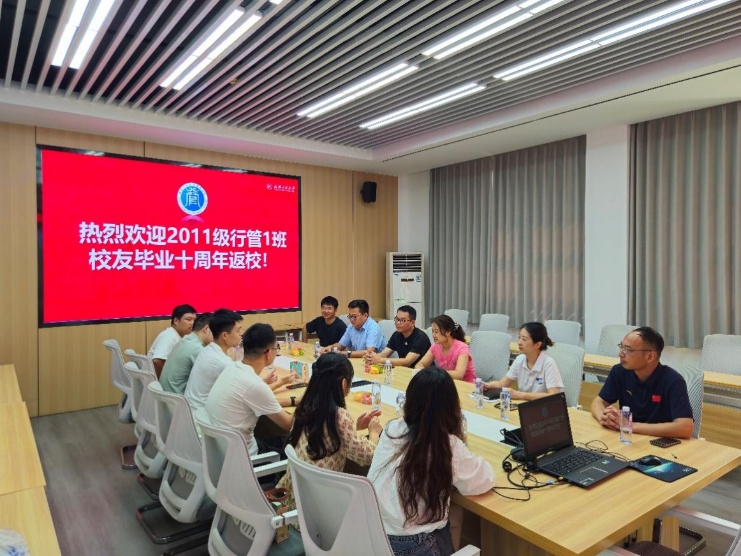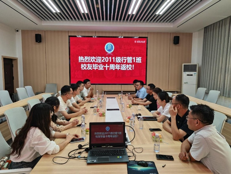 In the golden autumn of October, the campus was full of affection. On October 7, 2025, graduates of the Administrative Management Class 1 of the Grade 2011 from the School of Management at Wuhan Institute of Technology returned to their alma mater on the occasion of the 10th anniversary of their graduation, holding a 10th-anniversary reunion event with the theme of “Reuniting After a Decade, Recounting Teacher-Student Affection.” Filled with memories of youth and gratitude to their mentors, the alumni relived their friendship and renewed teacher-student bonds through a series of wonderful activities such as a teacher-student symposium, visiting the University History Museum, and re-walking the campus road.